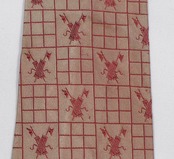 ブロンズカラーに赤色でイギリス調のパターンと四角形が織り込まれています。