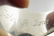 リング横には「JOHN」の文字とフットボールのヘルメットのデザイン、反対側は「1990」の文字に羊のようなデザインが彫られています。