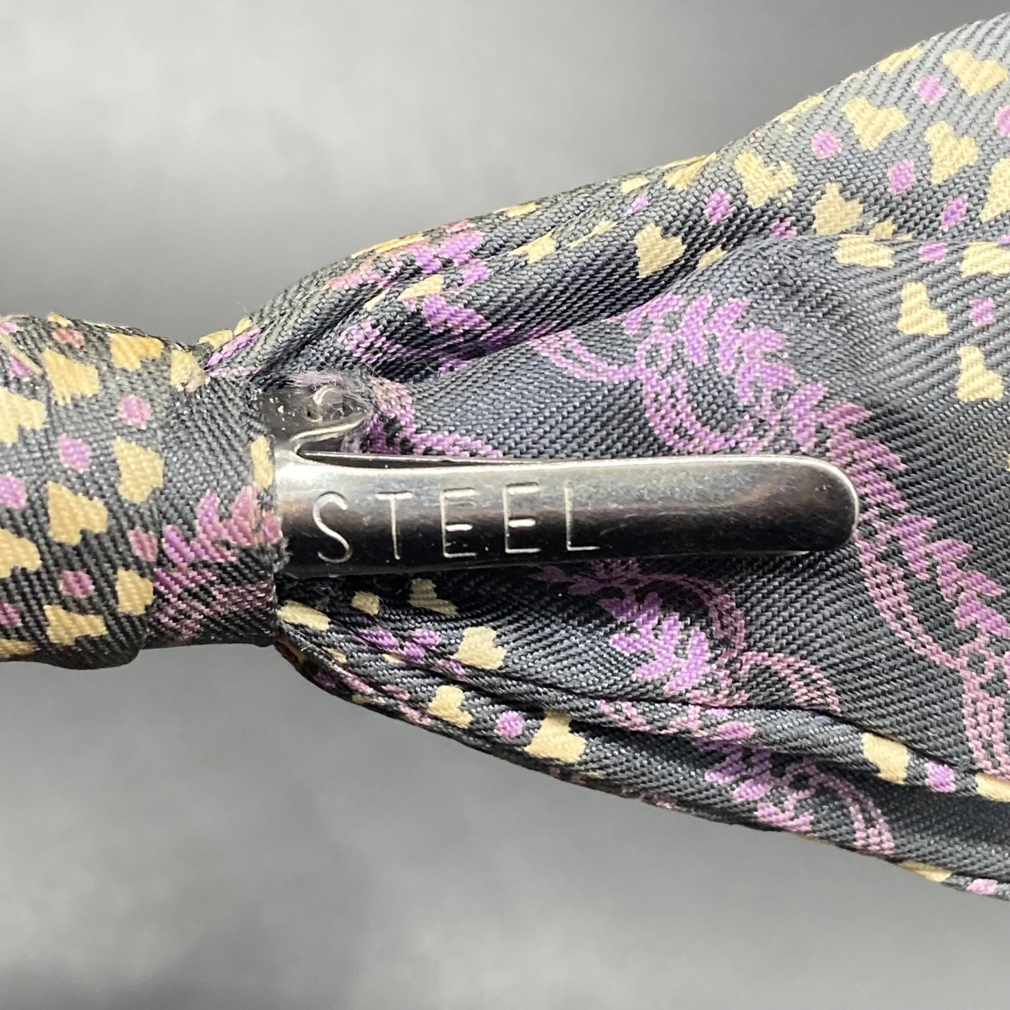 ブラック地に、パープルの柄とアイボリーの細かいハートの柄が入っています。
