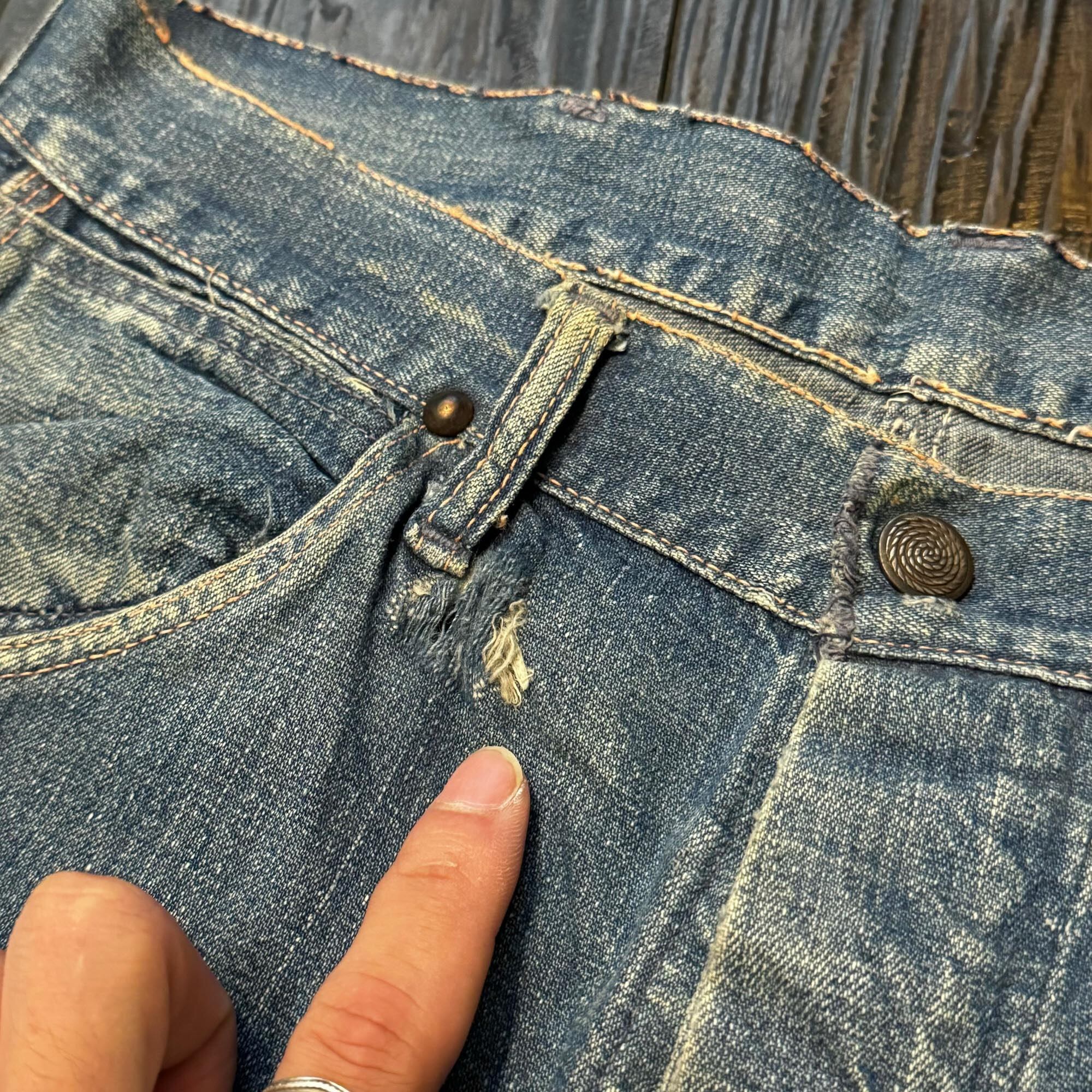 むき出しのリベットやドーナツボタンのボタンフライなど、古いディテール満載です。