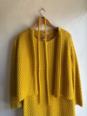 立体的な編み模様で厚手でしっかりとした質感になっており、鮮やかで暖かみのある
